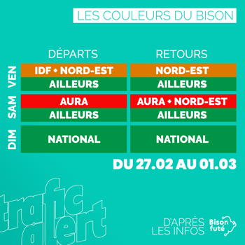 Retrouvez, en dehors de ces couleurs, les prévisions de difficultés par axe avec horaires, cartes et les éléments à retenir.
